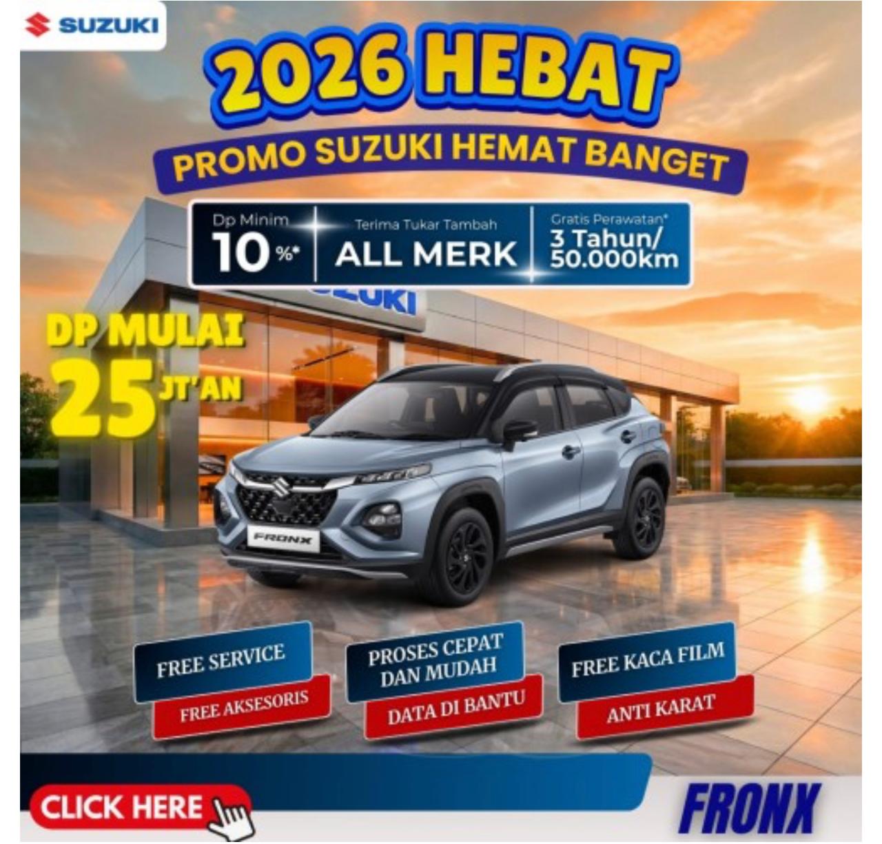 Suzuki Fronx hadir sebagai SUV compact modern dengan desain stylish, fitur canggih, dan efisiensi bahan bakar optimal. Pilihan ideal untuk mobilitas harian yang nyaman dan dinamis selengkapnya